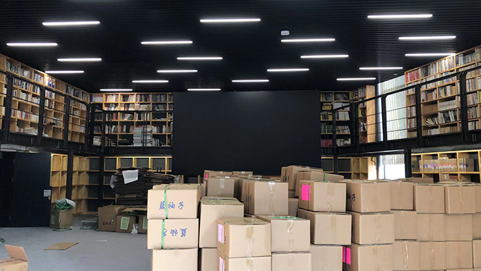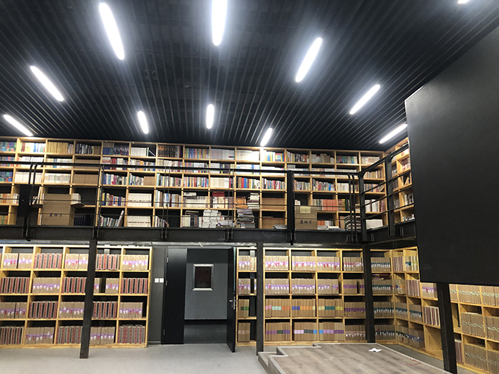 書屋以萬(wàn)余冊(cè)藏書為基底,營(yíng)造“書香隨春至”的閱讀氛圍。為減少對(duì)視覺環(huán)境的干擾,我們采用了: